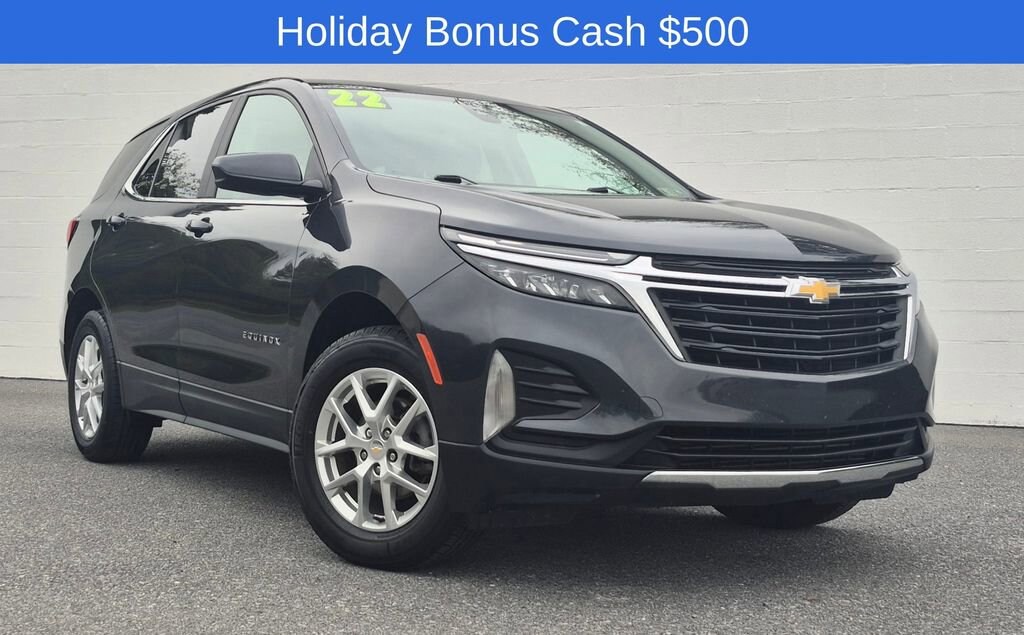 Clean CARFAX. 2022 Chevrolet Equinox LT Iron Gray Metallic AWD 6-Speed Automatic Electronic with Overdrive 1.5L DOHC Local Trade, 17" Aluminum Wheels, 2 Rear USB Charging-Only Ports, 8-Way Power Driver Seat Adjuster, ABS brakes, Air Conditioning, Bluetooth® For Phone, Compass, Dual front impact airbags, Dual front side impact airbags, Electronic Stability Control, Front Bucket Seats, Front Center Armrest, Fully automatic headlights, Heated door mirrors, Low tire pressure warning, Occupant sensing airbag, Outside temperature display, Overhead airbag, Overhead console, Power door mirrors, Power windows, Preferred Equipment Group 1LT, Premium audio system: Chevrolet Infotainment 3, Premium Cloth Seat Trim, Radio: Chevrolet Infotainment 3 System w/AM/FM, Rear window defroster, Rear window wiper, Remote keyless entry, Security system, SiriusXM Radio, Speed control, Speed-sensing steering, Split folding rear seat, Steering wheel mounted audio controls, Tachometer, Telescoping steering wheel, Tilt steering wheel, Traction control, Trip computer, Variably intermittent wipers, Wireless Apple CarPlay/Wireless Android Auto. 25/30 City/Highway MPG CALL US NOW FOR DETAILS 888-532-2121 HHCHEV.COM.
