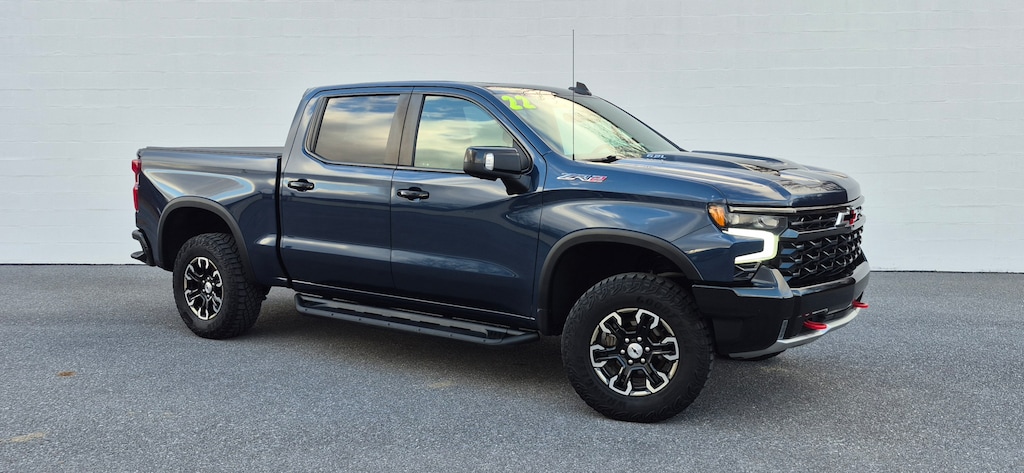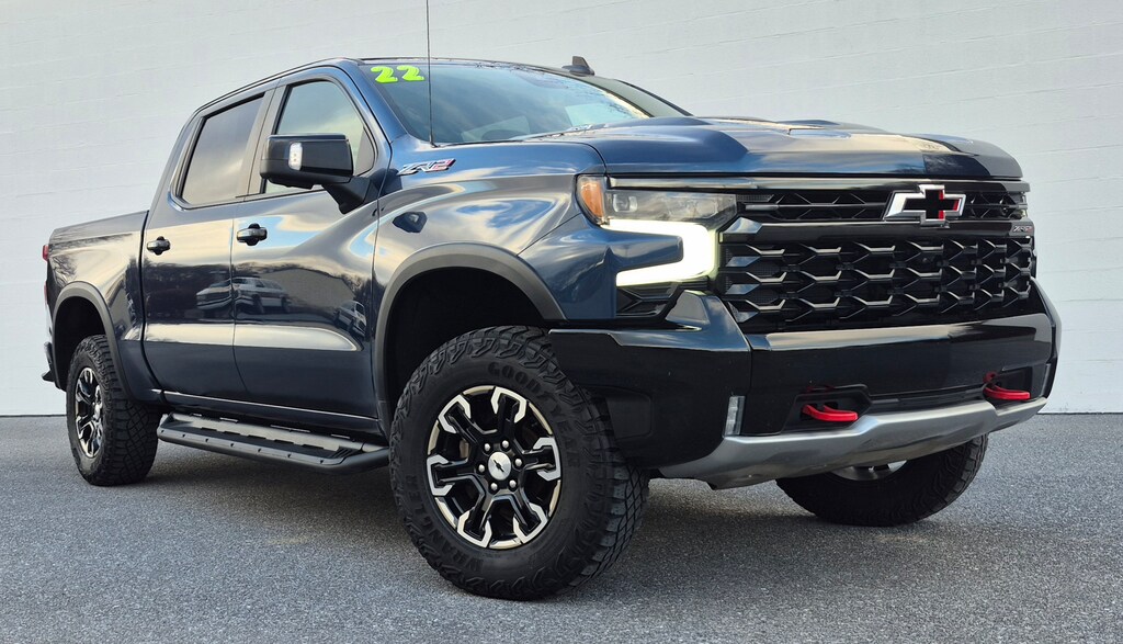 Elevate your driving experience with this exceptional 2022 Chevrolet Silverado 1500 ZR2. This rugged and capable pickup boasts a powerful EcoTec3 6.2L V8 engine paired with a smooth-shifting 10-speed automatic transmission, delivering exceptional performance and off-road prowess. Standout features include: Technology Package with Rear Camera Mirror and 15" Diagonal Head-Up Display Power Sunroof Power Tailgate Bose Premium 7-Speaker Sound System Wireless Phone Projection Heated and Ventilated Front Seats Heated Rear Seats Leather-Wrapped Steering Wheel Adaptive Cruise Control Rear Camera Mirror Trailering App This Silverado ZR2 is equipped to handle any adventure with its off-road-focused suspension, electronic locking rear differential, and impressive 4WD capabilities. The bold Blue exterior and premium interior appointments create a striking presence both on and off the beaten path. Designed to elevate your driving experience, the Silverado ZR2 offers a seamless blend of power, technology, and comfort. The spacious crew cab provides ample room for passengers, while the versatile cargo bed allows you to transport all your gear with ease. Safety is also a top priority, with features like Forward Collision Alert, Automatic Emergency Braking, and Rear Pedestrian Detection keeping you and your loved ones protected on the road. Whether you're tackling rugged terrain or navigating the daily commute, this 2022 Chevrolet Silverado 1500 ZR2 is the perfect companion. Experience the ultimate in capability, technology, and style. Visit our showroom today to take this exceptional vehicle for a test drive and discover how it can elevate your driving experience.
