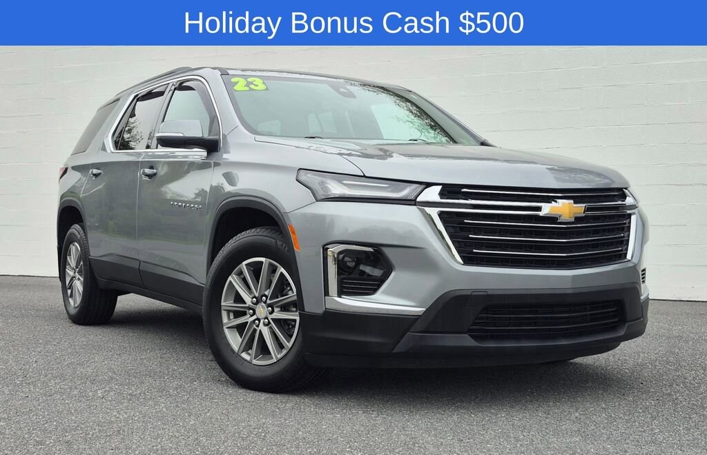 CARFAX One-Owner. Clean CARFAX. 2023 Chevrolet Traverse LT Sterling Gray Metallic 1LT AWD 9-Speed Automatic 3.6L V6 SIDI VVT Bought New at H&H!, Local Trade, 2-Way Manual Front Passenger Seat Adjuster, 3rd row seats: split-bench, 8-Way Power Driver Seat Adjuster, ABS brakes, Apple CarPlay/Android Auto, Automatic temperature control, Compass, Dual front impact airbags, Dual front side impact airbags, Electronic Stability Control, Exterior Parking Camera Rear, Front Bucket Seats, Front dual zone A/C, Fully automatic headlights, Garage door transmitter, Heated door mirrors, Heated front seats, Illuminated entry, Leather steering wheel, Low tire pressure warning, Occupant sensing airbag, Outside temperature display, Overhead airbag, Overhead console, Power door mirrors, Power Driver Lumbar Control, Power Liftgate, Power windows, Preferred Equipment Group 1LT, Premium Cloth Seat Trim, Radio: Chevrolet Infotainment 3 Plus System, Rear air conditioning, Rear window defroster, Rear window wiper, Remote keyless entry, Security system, SiriusXM w/360L, Speed control, Steering wheel mounted audio controls, Tachometer, Telescoping steering wheel, Tilt steering wheel, Traction control, Trip computer, Turn signal indicator mirrors, Variably intermittent wipers, Voltmeter, Wheels: 18" Bright Silver-Painted Aluminum. Odometer is 16764 miles below market average! CALL US NOW FOR DETAILS 888-532-2121 HHCHEV.COM.