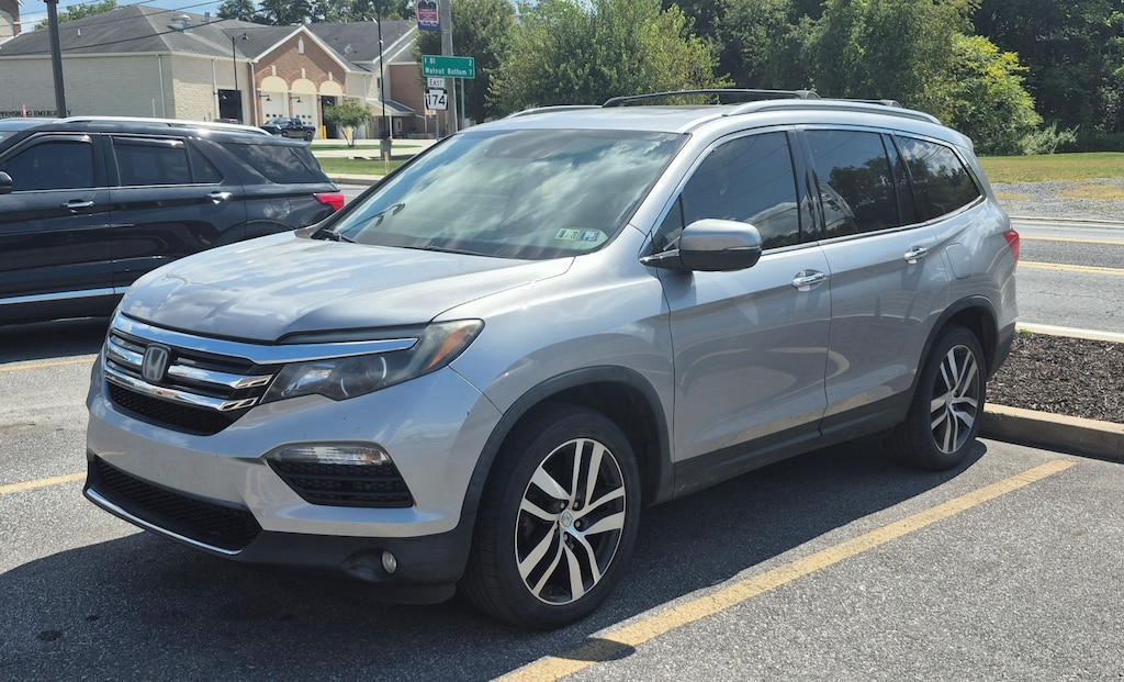 2018 Honda Pilot Elite Silver AWD 9-Speed Automatic 3.5L V6 24V SOHC i-VTEC Local Trade, AS IS Budget Buy, 20" Alloy Wheels, 3rd row seats: split-bench, ABS brakes, Apple CarPlay/Android Auto, Auto-dimming Rear-View mirror, Automatic temperature control, Blind Spot Information (BSI) System warning, Compass, Delay-off headlights, Dual front impact airbags, Dual front side impact airbags, Electronic Stability Control, Exterior Parking Camera Rear, Front Bucket Seats, Front dual zone A/C, Front fog lights, Fully automatic headlights, Garage door transmitter: HomeLink, Heated & Ventilated Front Bucket Seats, Heated door mirrors, Heated rear seats, Heated steering wheel, Honda Satellite-Linked Navigation System, Leather Shift Knob, Low tire pressure warning, Memory seat, Navigation System, Occupant sensing airbag, Outside temperature display, Overhead airbag, Overhead console, Perforated Leather-Trimmed Seats, Power door mirrors, Power driver seat, Power Liftgate, Power moonroof, Power passenger seat, Power windows, Radio: AM/FM/HD Premium Audio System, Rain sensing wipers, Rear air conditioning, Rear window defroster, Rear window wiper, Remote keyless entry, Security system, SiriusXM Radio, Speed control, Split folding rear seat, Steering wheel mounted audio controls, Tachometer, Telescoping steering wheel, Tilt steering wheel, Trip computer, Turn signal indicator mirrors, Variably intermittent wipers. 19/26 City/Highway MPG CALL US NOW FOR DETAILS 888-532-2121 HHCHEV.COM.