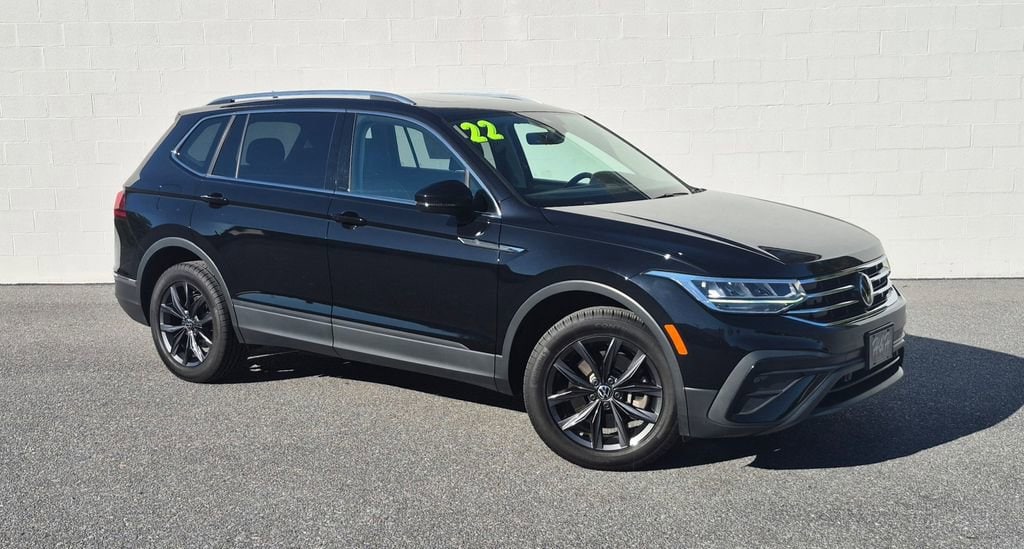 Clean CARFAX. 2022 Volkswagen Tiguan 2.0T SE Black AWD 8-Speed Automatic with Tiptronic 2.0L TSI DOHC ABS brakes, Auto-dimming Rear-View mirror, Automatic temperature control, Compass, Dual front impact airbags, Dual front side impact airbags, Electronic Stability Control, Emergency communication system: Car-Net, Exterior Parking Camera Rear, Four wheel independent suspension, Front Bucket Seats, Front dual zone A/C, Fully automatic headlights, Heated door mirrors, Heated front seats, Leather Shift Knob, Low tire pressure warning, Occupant sensing airbag, Outside temperature display, Overhead airbag, Overhead console, Perforated V-Tex Leatherette Seating Surfaces, Power door mirrors, Power driver seat, Power Liftgate, Power windows, Radio: MIB3 Composition Media AM/FM/HD, Rain sensing wipers, Rear window defroster, Rear window wiper, Remote keyless entry, Security system, Speed control, Split folding rear seat, Steering wheel mounted audio controls, Tachometer, Telescoping steering wheel, Tilt steering wheel, Traction control, Trip computer, Turn signal indicator mirrors, Variably intermittent wipers, Wheels: 18" Dark Graphite 10-Spoke Alloy. Odometer is 7172 miles below market average! 22/29 City/Highway MPG CALL US NOW FOR DETAILS 888-532-2121 HHCHEV.COM.